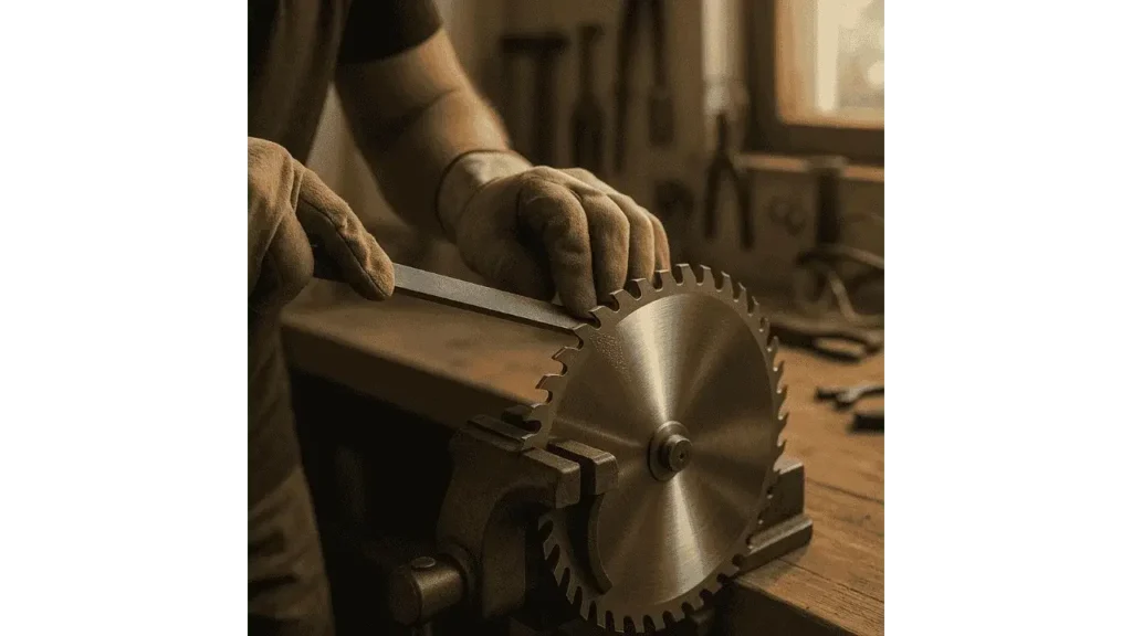 Gather everything before starting. You’ll need a fine diamond file or a circular saw sharpener, a sturdy vise or jig, a marker, and a brush for cleaning. Always wear safety gloves and goggles. Disconnect your saw from power to avoid accidents and make sure your workbench is steady and well-lit.