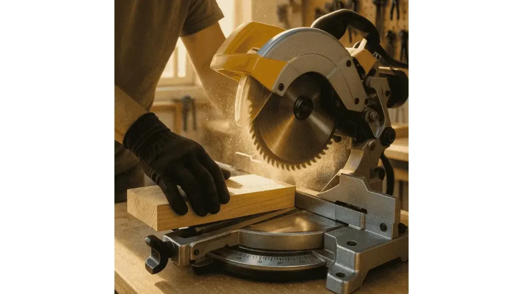 On sliding saws, pull the blade toward you first, then push it back gently through the material. Let the blade, not force, do the work.