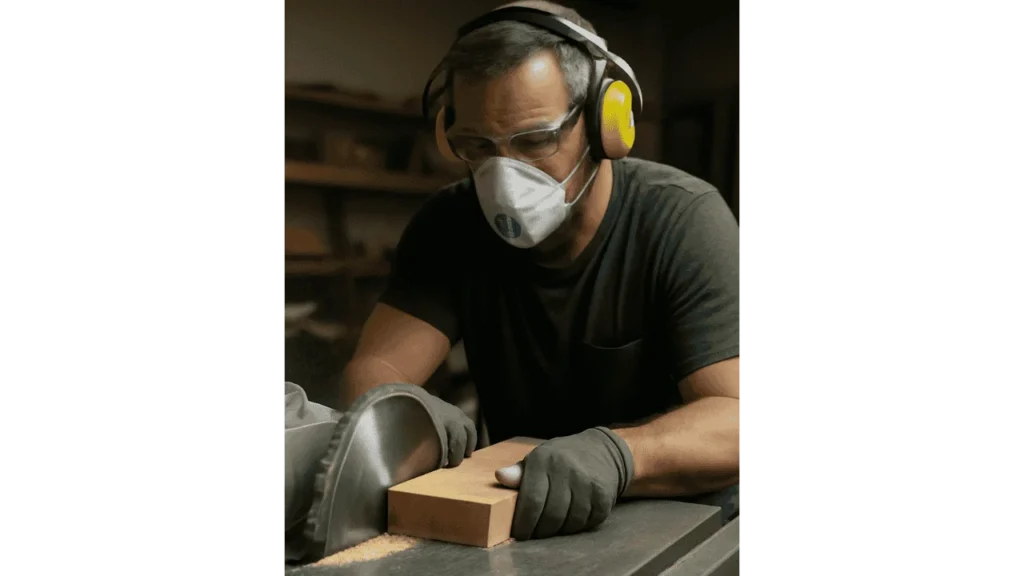 Before you even think about turning on your table saw, make sure you have the correct PPE. Always wear safety glasses or goggles to protect your eyes from flying debris. Hearing protection is equally important to safeguard your hearing from the saw’s loud noise. Avoid wearing loose clothing, as it can get caught in the saw.