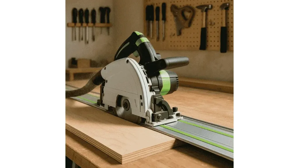 A track saw is a circular saw designed to glide along a guide rail, which guarantees straight and accurate cuts. Unlike a traditional circular saw that can deviate from the cutting line, the track saw moves smoothly along the rail, producing professional-quality edges. Using it on large sheets of plywood or MDF shows a noticeable difference in precision compared to regular circular saws, making it ideal for homeowners tackling DIY projects.
